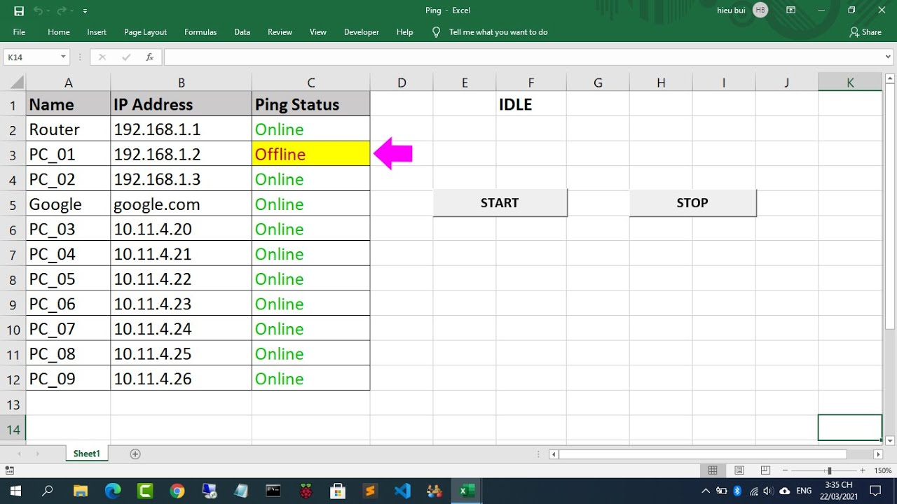 通常、ネットワーク内でPINGコマンドを入力して、ノードの到達性を確認するためにはコマンドプロンプトやアプリを使用するのですが、エクセルのVBAで確認ができるという動画を見つけました。