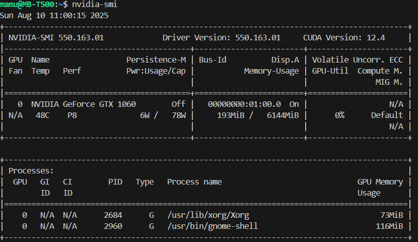 セットアップ手順(Ubuntu 24.04 + GTX 1060 + CUDA 12.4)