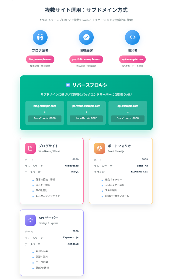 そこで注目したいのが「リバースプロキシ」という技術です。特に、SSL/TLS証明書の自動更新機能を備えたリバースプロキシは、個人開発者や小規模チームにとって非常に重要なツールとなっています。